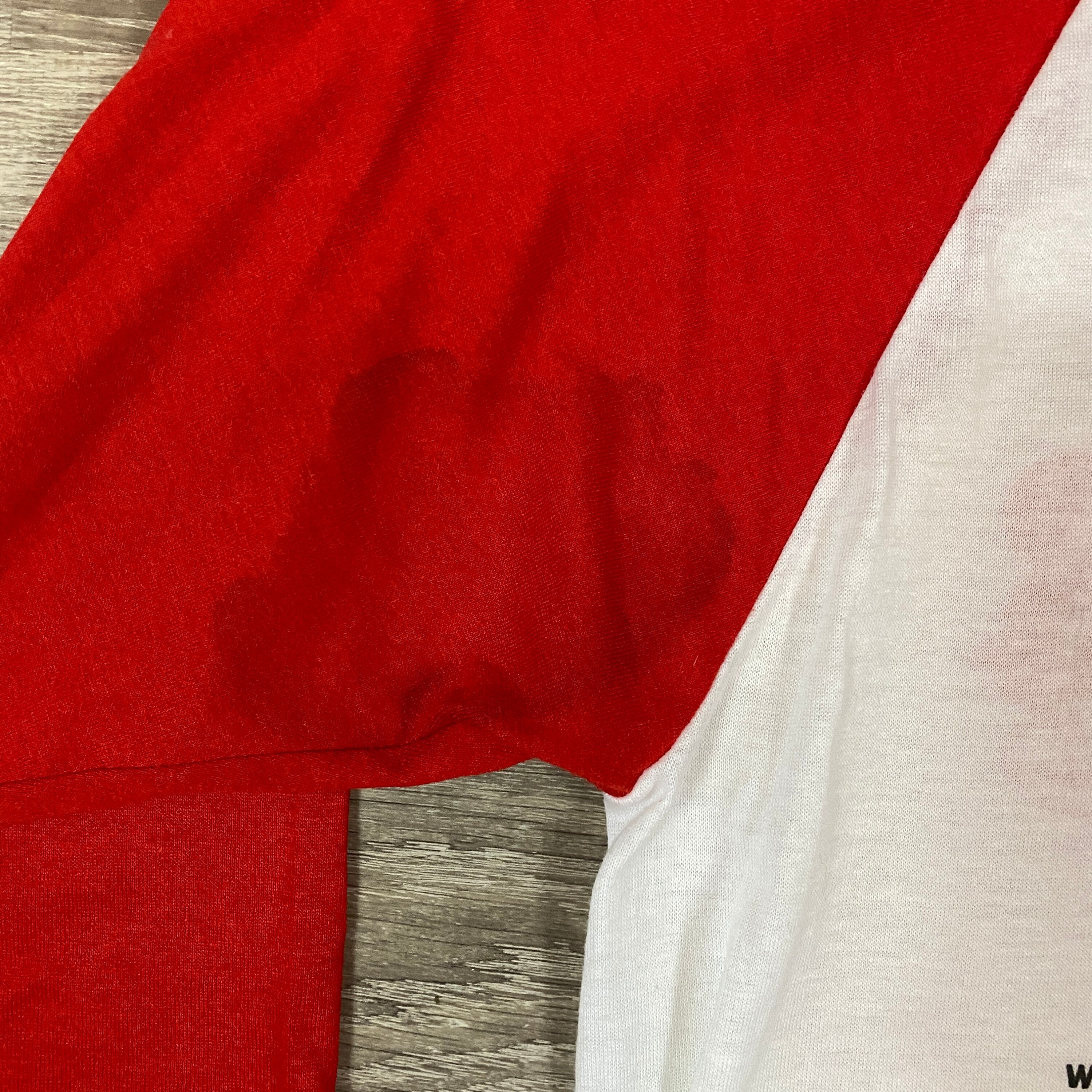 Condition: Pre-owned. Good condition. Slight discoloration on the sleeve and mark on the front tail (pictured). Comes from a non-smoking facility. Pictures are of the actual shirt.